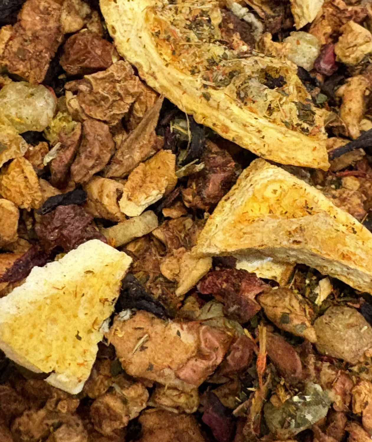Ingredientes:  Manzana, Piña, Hibisco, Rodajas Naranja, Pasas de Corinto, Mora Dulce, Limón
